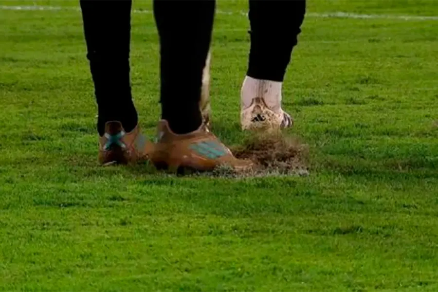 Gastón Benedetti aprovechó el parate para romper el césped del lugar donde Botta debería apoyar el balón. Con sus botines, el defensor destruyó ese sector del terreno y al patear, el media punta tuvo una dificultad extra para sacar un buen remate.