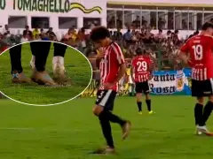 Durante el duelo, las cámaras captaron a Gastón Benedetti y Alexis Castro haciendo un pozo con los pies en el sector donde, segundos después, el mediocampista se paró para patear.