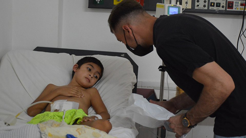 Varios futbolistas del plantel profesional visitaron a niños que se encuentran internados en el hospital, en el marco del Día Mundial del Riñón. El gran gesto se realizó este jueves, al terminar la práctica en el predio de La Capillita.