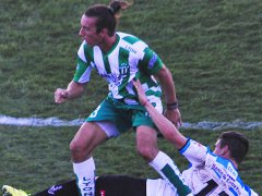 La banda izquierda, era el lugar elegido por el local para buscar con más intensidad el arco de la visita. Garro iba mucho, pero no retrocedía y la mitad del campo Albiverde quedaba descompensada.