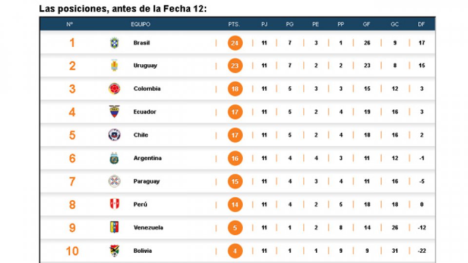 Sería como una derrota porque se iría a 17 puntos, los mismos que hoy tienen Ecuador y Chile que, en caso de ganar uno o los dos, se despegarían y acomodarían en el objetivo de la clasificación directa mientras que también podría ser superada por Paraguay (tiene 15 puntos y juega con Bolivia) o alcanzada por Perú (tiene 14 y juega con Brasil), que además tiene diferencia de gol 0 (cero).