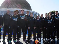 En un colorido evento, aunque con poca presencia del público por el día y el horario, el plantel argentino realizó un Media Day, con algunos destellos de las grandes Ligas. Llegaron en caravana, presentaron la nueva camiseta que utilizarán en la Copa del Mundo, hablaron con los medios y hasta jugaron al básquetbol con los jóvenes y las jugadoras de la selección femenina.
