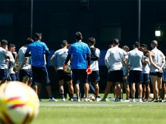 Los jugadores y cuerpo técnico de Boca participaron de una charla motivacional.
