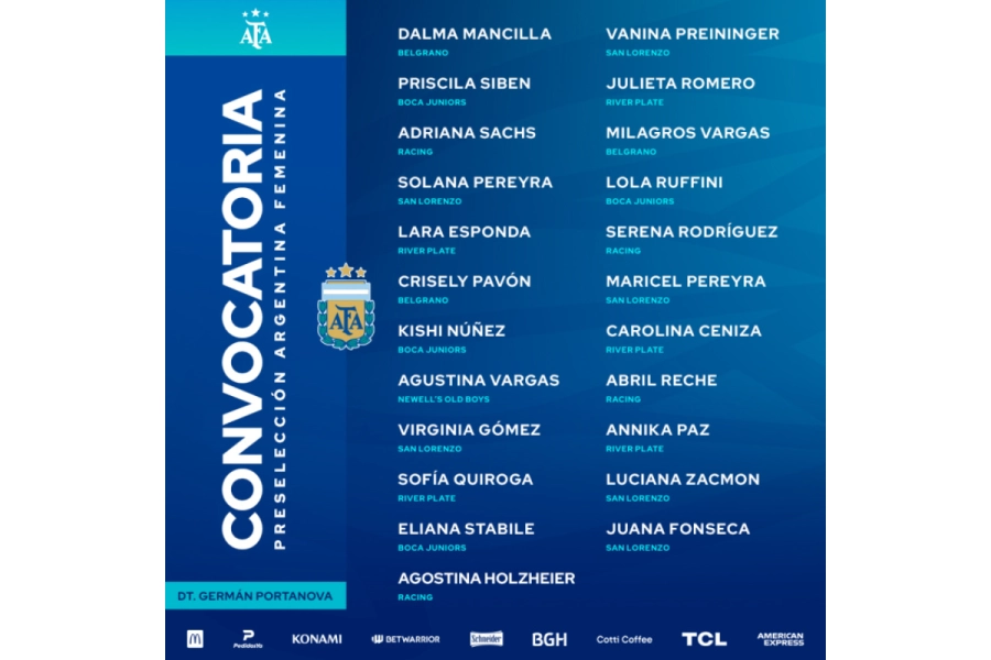 A continuación, las jugadoras convocadas que trabajarán de miércoles a viernes en el predio Lionel Andrés Messi: