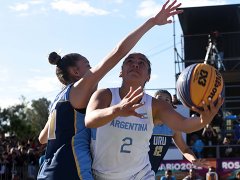 Las chicas (con la participación de Nicole Tapari, de Gualeguaychú) abrieron la jornada con una victoria sobre Bolivia por 19-6 en un partido que dominaron sin problemas gracias a una sólida tarea defensiva y a un buen trabajo para aprovechar en ataque los huecos que regalaba el rival. Argentina sorprendió varias veces a su rival con canastas rápidas y consolidó su ventaja con oficio para sacar faltas y cobrar desde la línea.