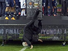 Frank Lowy iba dispuesto a darle el trofeo al mejor de la Liga y se fue al piso. El dirigente sufrió una terrible caída antes de entregar el trofeo al campeón de la A-League, el Melboure City; <b>Mirá el video</b>