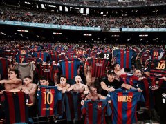 En las tribunas del Camp Nou, los fanas se sacaron sus camisetas y las ofrecieron tal y como lo hizo el rosarino en el Santiago Bernabéu, y la impactante foto da vueltas por el mundo.