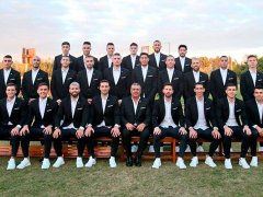 Una prestigiosa marca se encargó de la indumentaria que utilizó Argentina para sacarse la foto oficial del plantel. Antes de subir el avión, el plantel posó con un elegante look. Chiqui Tapia participó de la imagen institucional.