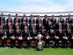 Los 23 jugadores del plantel Millonario que viajarán a Japón, junto al cuerpo técnico, posaron en el Monumental con la Copa Libertadores, luciendo la vestimenta con la que partirán a tierras orientales para disputar el Mundial de Clubes.