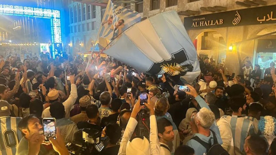 Fue la séptima vez que los simpatizantes albicelestes coparon el mercado de Souq Waqif, con el motivo de alentar a la Selección Argentina. Se cantaron los 'hits' del Mundial, acompañados del colorido característico de nuestro fútbol.