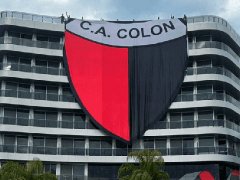 A la espera del duelo ante River por el Trofeo de Campeones, una enorme bandera con el escudo de Colón fue colgada en el lugar donde se alojan ambos planteles. El Marías Hotel es el destino que eligieron ambos equipos para albergarse, a la espera del partido de mañana sábado desde las 21:10 en el estadio Único Madre de Ciudades, y fue allí donde apareció el trapo.