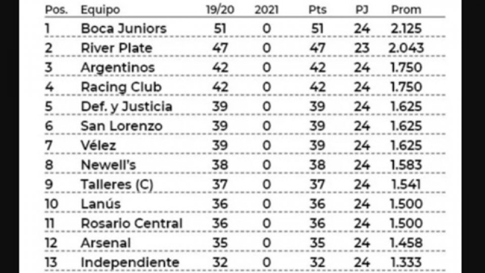 ¿Cuál es la polémica? Es que el hecho de que no haya descensos en este 2021 deja beneficiados y perjudicados. Como se borran los puntos de la temporada 18/19, hay clubes que pegan un salto de nueve posiciones en los promedios: San Lorenzo pasa del 15° al 6° lugar y Argentinos sube del 12° al 3°. Los mal pensados hablan de una maniobra de Marcelo Tinelli, presidente de la LPF, en beneficio de su club, al que se le va una pobre campaña de 23 puntos. Lo mismo podría interpretarse de Cristian Malaspina, vice de la Liga y pope del Bicho, al que se le borra un último puesto con 22 unidades. Sin embargo, la decisión les excede a ambos dirigentes.