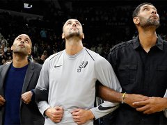 La foto fue contundente y aparecieron figuras de los Spurs. Junto a Manu Ginóbili estuvieron Tony Parker, ausente en el partido de ayer por lesión, y Tim Duncan, quien ya se retiró.