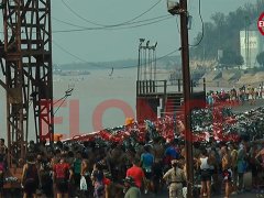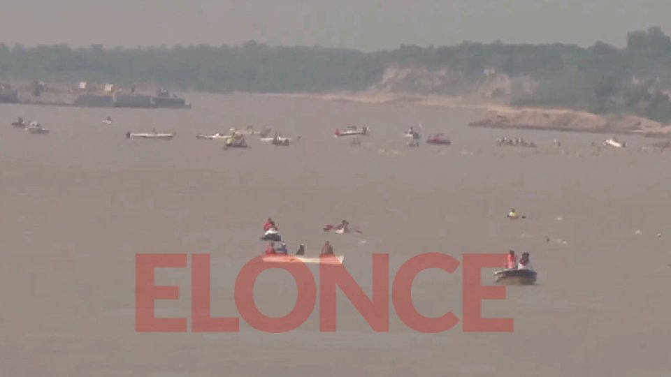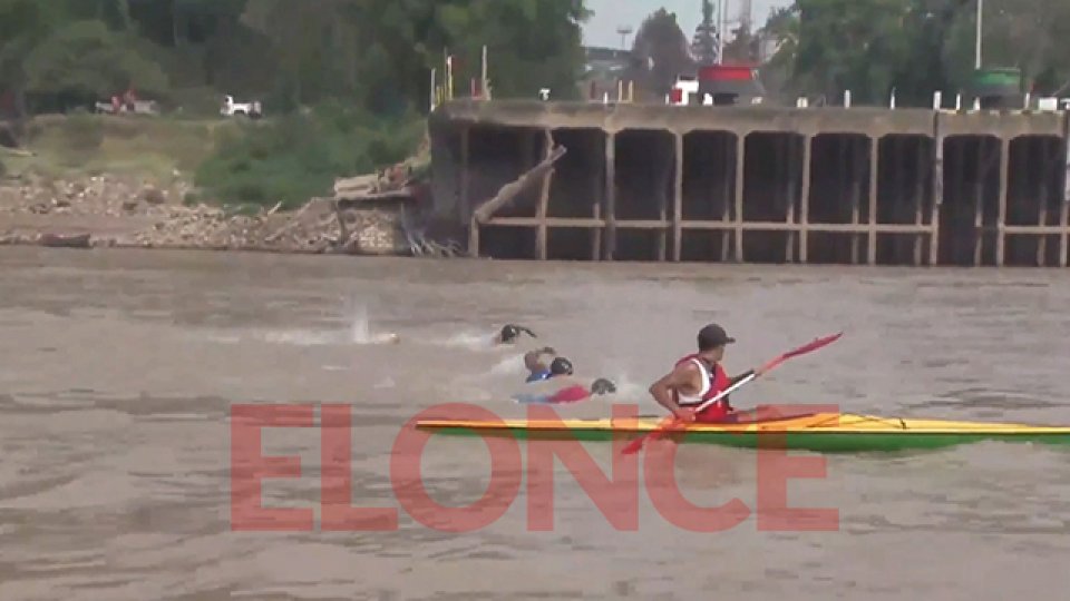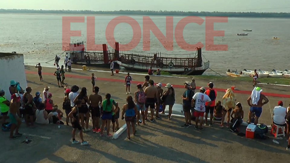 Pasadas las 16 horas, dio inicio la competencia, que estuvo demorada por el paso de una gran embarcación sobre las aguas del Paraná, por donde los competidores estaban por arrancar su travesía deportiva.