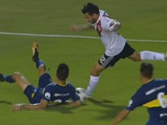 Nacho entró al área bajo la atenta mirada del entrerriano Paolo Goltz e intentó enganchar para dejar en el camino al marcador central de 32 años. El ex futbolista de Lanús, oriundo de Hasenkamp se tiró al piso y, con el mismo envión, detuvo con la mano el recorrido del balón que recién había corrido el goleador del Millonario.