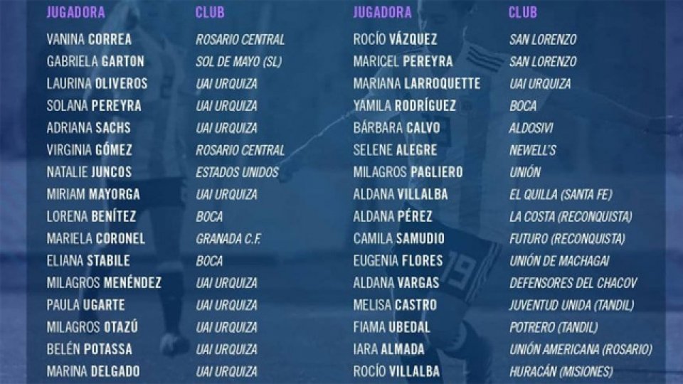 La jugadoras se reunirán el martes próximo en el predio de Ezeiza para comenzar los entrenamientos. La lista de nombres integra futbolistas del ámbito local junto a algunas del interior del país y varias Sub 20, con la intención de afianzar al equipo juvenil. Luego, en territorio norteamericano se sumarán las argentinas que juegan en Europa.