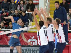 El elenco dirigido técnicamente por Julio Velasco se impuso por 3 a 1 frente el selectivo norteamericano, con parciales de 25-18, 25-19, 17-25 y 25-23, en el primero de la serie de tres amistosos que se jugarán en el Polideportivo de Morón.