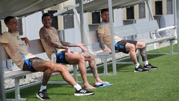 Los que ingresaron anoche (Nicolás Otamendi, Nahuel Molina, Nicolás González, Exequiel Palacios y Lautaro Martínez) se movieron a la par de la segunda tanda en medio de una calurosa mañana. Para ellos hubo tareas con pelota en espacios reducidos y secuencias de defensa-ataque.