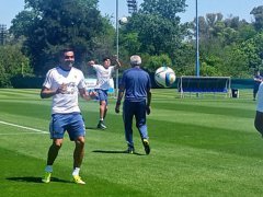 En el entrenamiento, hubo regenerativo para los que jugaron contra Brasil y fútbol reducido para el resto, con la idea de equilibrar las cargas.