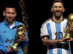 Finalmente, se descubrió una estatua de Lionel Messi de tamaño real, vestido con la camiseta de la Selección Argentina y con la copa del mundo en sus manos. Y Alejandro Domínguez volvió a intervenir por enésima vez para entregarle ¡"el bastón del fútbol mundial"! y obligarlo a decir unas últimas palabras. "Es un montón, nunca imaginé llegar hasta acá", afirmó el astro, antes de que la fiesta termine a puro Muchachos... No podía faltar.