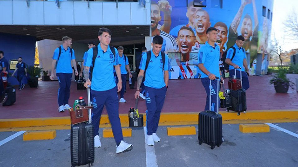 El "Jefecito" accedió a tomarse infinidad de "selfies" con los aficionados apostados en el lugar, firmando simultáneamente buzos, remeras y banderas argentinas, mientras que los jugadores más solicitados fueron Matías Soulé, Valentín Barco, Mateo Tanlongo y el capitán Agustín Giay.