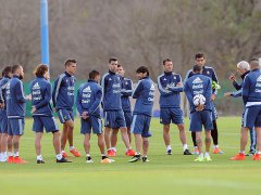 Se entrena en el Predio de Ezeiza, ya pensando en la Copa América de Chile, en la que debutará el 13 ante Paraguay. Martino no cuenta con Messi, Tevez, Mascherano y Pereyra, ya que se preparan para la final de la Champions del sábado.