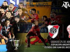 El duelo entre River y Huracán por la Supercopa Argentina será el 25 de abril en Cuyo, en el estadio del Bicentenario de San Juan. El Millonario llega como ganador de la Superfinal 2014 y el Globo como el campeón de la Copa Argentina 2014.