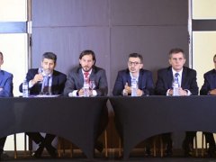 Mario Laporta, Ángel Gabriel Nardiello, Hernán Etiennot, Daniel Artana y Gustavo Albano Abreu, miembros del Tribunal, se presentaron en un hotel de Puerto Madero para dar detalles de cómo se llegó a aplicar este castigo a la entidad azulgrana.
