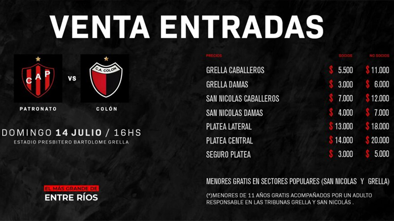 Por su parte, los menores de hasta 11 años ingresarán gratis en los sectores populares Grella y San Nicolás.
