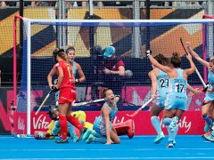 Ganaron 6-2 con goles de Julieta Jankunas, Paula Ortiz (2), Agustina Albertario, Delfina Merino y Noel Barrionuevo. Bajo el mando de Agustín Corradini, la selección argentina de hockey quiere repetir los éxitos de Perth 2002 y Rosario 2010