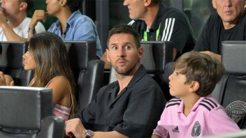Pese a no estar en el campo de juego, Lionel Messi no se perdió ni un minuto del encuentro y lo vivió con mucha intensidad desde el palco acompañado por su mujer, Antonela Rocuzzo y sus hijos, Thiago, Mateo y Ciro.