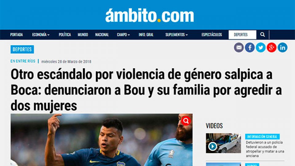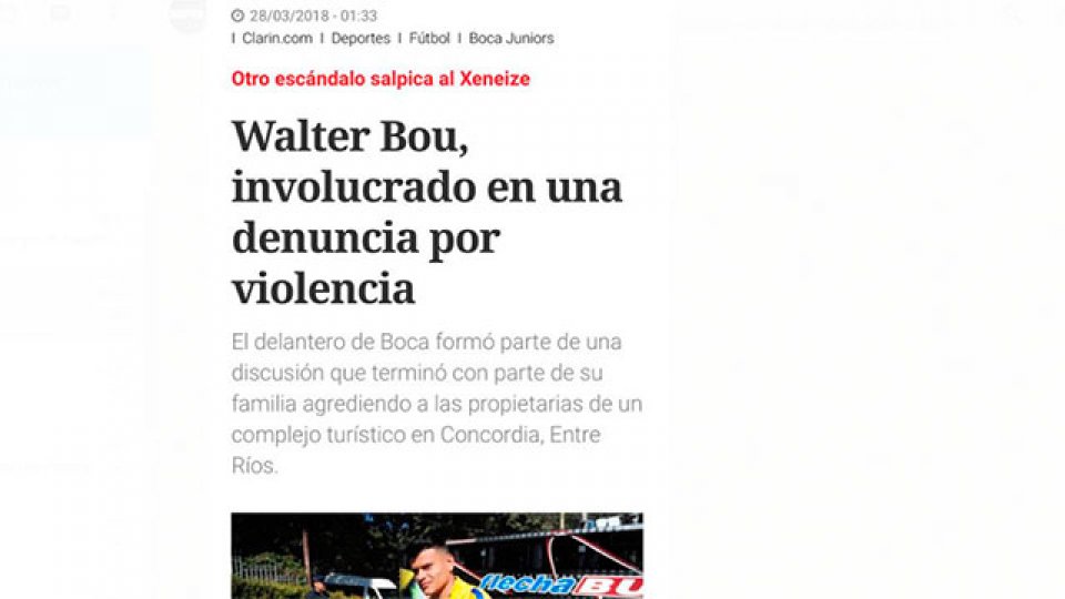 El jugador de Boca protagonizó un escándalo en Concordia, cuando junto a familiares agredieron y golpearon a mujeres propietarias de un complejo turístico. Los medios nacionales reflejaron la denuncia publicada por <b>SuperDeportivo:</b>
