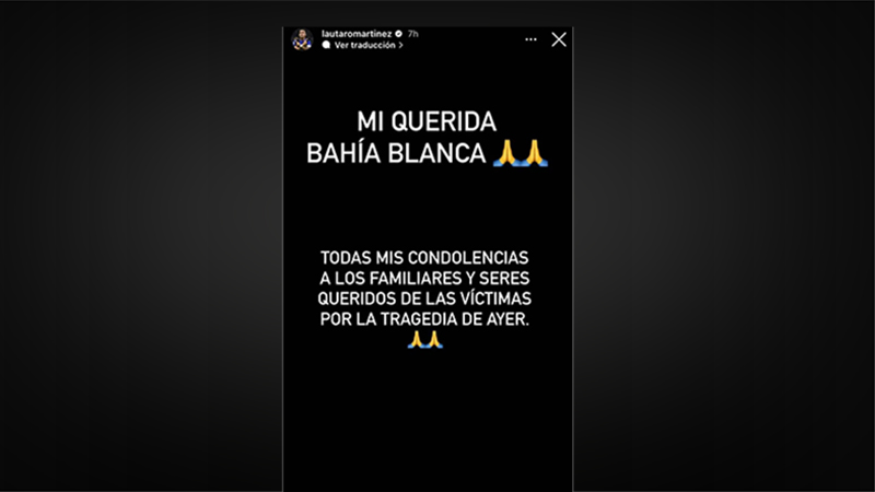 El goleador y símbolo de Inter, se manifestó en su historia de Instagram luego de los destrozos en su ciudad natal: "Mi querida Bahía Blanca. Todas mis condolencias a los familiares y seres queridos de las víctimas por a tragedia de ayer".