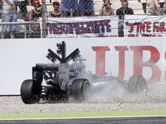 El choque ocurrió en la zona del 'Motodrom'. Su coche hizo un trompo y se estrelló contra las protecciones. El piloto inglés, que partirá 16º en carrera, salió por su propio pie, aunque algo aturdido.