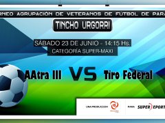 La Liga de Agrupación de Veteranos de Fútbol de Paraná tiene una agenda con partidos en las categorías Maxi, Súper Maxi y Master. En esta última, a partir de las 13:15, se enfrentan Paracao y Alegría. Luego en la divisional Súper Maxi, se miden Aatra III y Tiro Federal desde las 14:15.