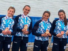 Sabrina Ameghino, la uruguayense María Garro, la paranaense Micaela Maslein y Brenda Rojas obtuvieron el tercer puesto en la final de K4 500 metros y sumaron la octava medalla para la delegación.