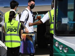 Messi descendió del avión por una de sus escalinata con una mochila en su espalda, una pequeña valija en su mano derecha, un mate sujeto con por la otra y un termo bajo con la axila del brazo izquierdo, según fue retratado por la cuenta especializada Saar Ari Ros en Twitter.
