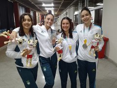 Mientras que Lucia Milagros Gauna, Agostina Ariadna Hein, Delfina Verónica Dini y Malena Santillán alcanzaron la medalla de plata en la posta de 4x200 libre, con un tiempo de 8:19.19. El ganador fue el cuarteto de Brasil (8:09.77) y tercero quedó Colombia (8:20.14).