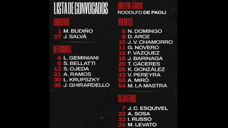 Destaca también la presencia del juvenil de 18 años Alejo Miró, quien se desempeña de volante y recibió su segunda convocatoria profesional.