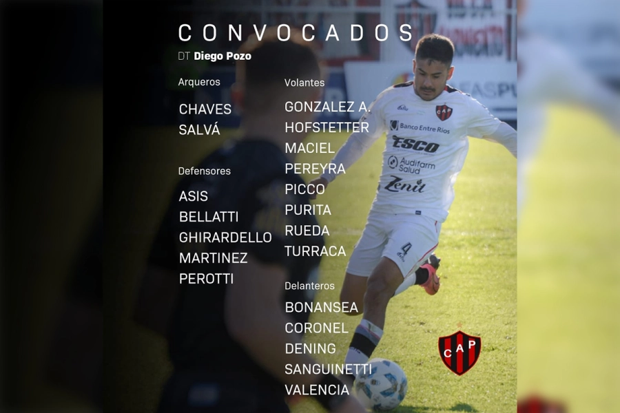 El entrenador de Patronato, Diego Pozo, anunció la lista de jugadores convocados para visitar a San Miguel este sábado a partir de las 15 horas en el Estadio Malvinas Argentinas, por la jornada 30 de la Zona A de la Primera Nacional 2024.