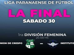 Unión de Crespo e Instituto se medirán en el duelo decisivo del certamen de Primera División de la Liga Paranaense de Fútbol en su rama femenina. El choque será el sábado, a partir de las 20.00, en el estadio del Cervecero.