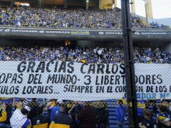 "El hincha de Boca tiene memoria, gracias por todo Carlos", reza una de las banderas que los hinchas colocaron en la popular local. "Siempre en nuestros corazones", dice un pasacalles colgado en las inmediaciones de la Bombonera.