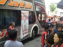 Con un gran banderazo de apoyo y caravana, los hinchas del Rojinegro se concentraron frente al hotel de calle 9 de Julio, desde donde partió esta tarde el plantel de Patronato que irá por el ascenso ante Santamarina de Tandil.