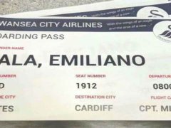 En la previa al Derbi del Sur de Gales, los simpatizantes del clásico rival del Cardiff City, imprimieron, como una burla de pésimo gusto, falsos pasajes de avión con el nombre del delantero argentino fallecido en un accidente aéreo.