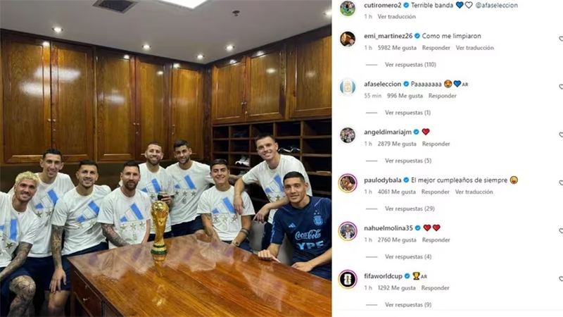 La imagen con la Copa fue subida por el propio Messi a sus redes sociales y también por el zaguero Cristian "Cuti" Romero, quien agregó un posteo: "Ufff..terrible bandaaaaa...".