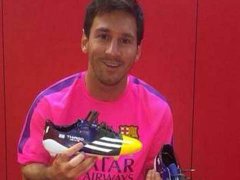 La Pulga presentó sus nuevos botines, los que estrenará este miércoles ante el Apoel por la Champions League. El calzado del crack de Barcelona, que utilizará durante toda la temporada, lleva inscripto el nombre de su hijo, Thiago.