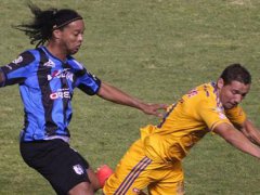 Dinho jugó su primer partido con la camisetas del club mejicano Querétaro, pero fue un debut feliz. Su equipo perdió como local 1 a 0 ante Tigre, y el astro brasileño erró un penal.