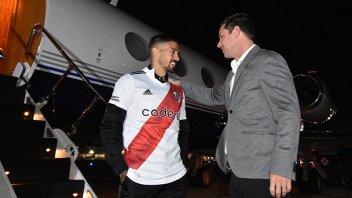 Lanzini fue recibido por el presidente del club, Jorge Brito, tras aterrizar en el aeropuerto de Ezeiza, donde rápidamente se puso la camiseta de River. "Bienvenido a casa, Manu", publicó River en sus cuentas oficiales con una foto de Lanzini acompañado por Brito al bajar del avión.
