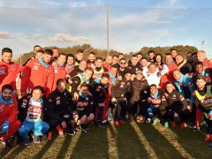El astro argentino estuvo en el entrenamiento, al que fue invitado por algunos jugadores del plantel y les prometió ir a Madrid el 15 de febrero a verlos contra el Real por la ida de los octavos de final de la Champions League.