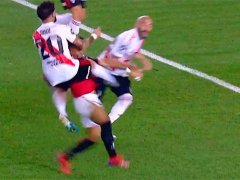 Cuando el duelo entre River y Colón estaba 0 a 0, el lateral nacido en María Grande fue protagonista de una acción en el área propia donde chocó con Wilson Morelo. Al respecto, el Muñeco afirmó: "No fue penal, no hay forma de frenarse".